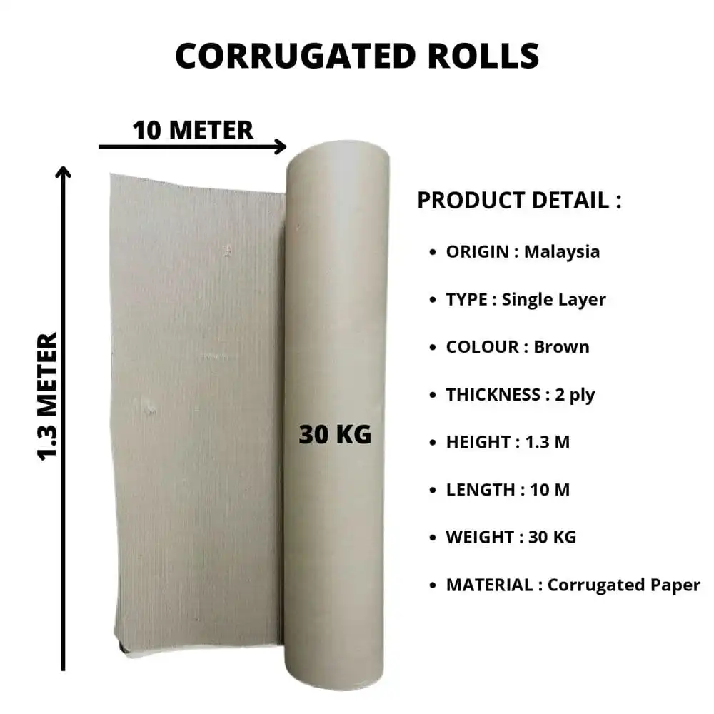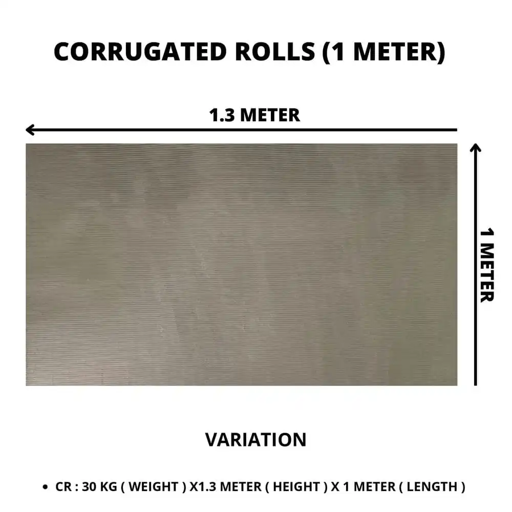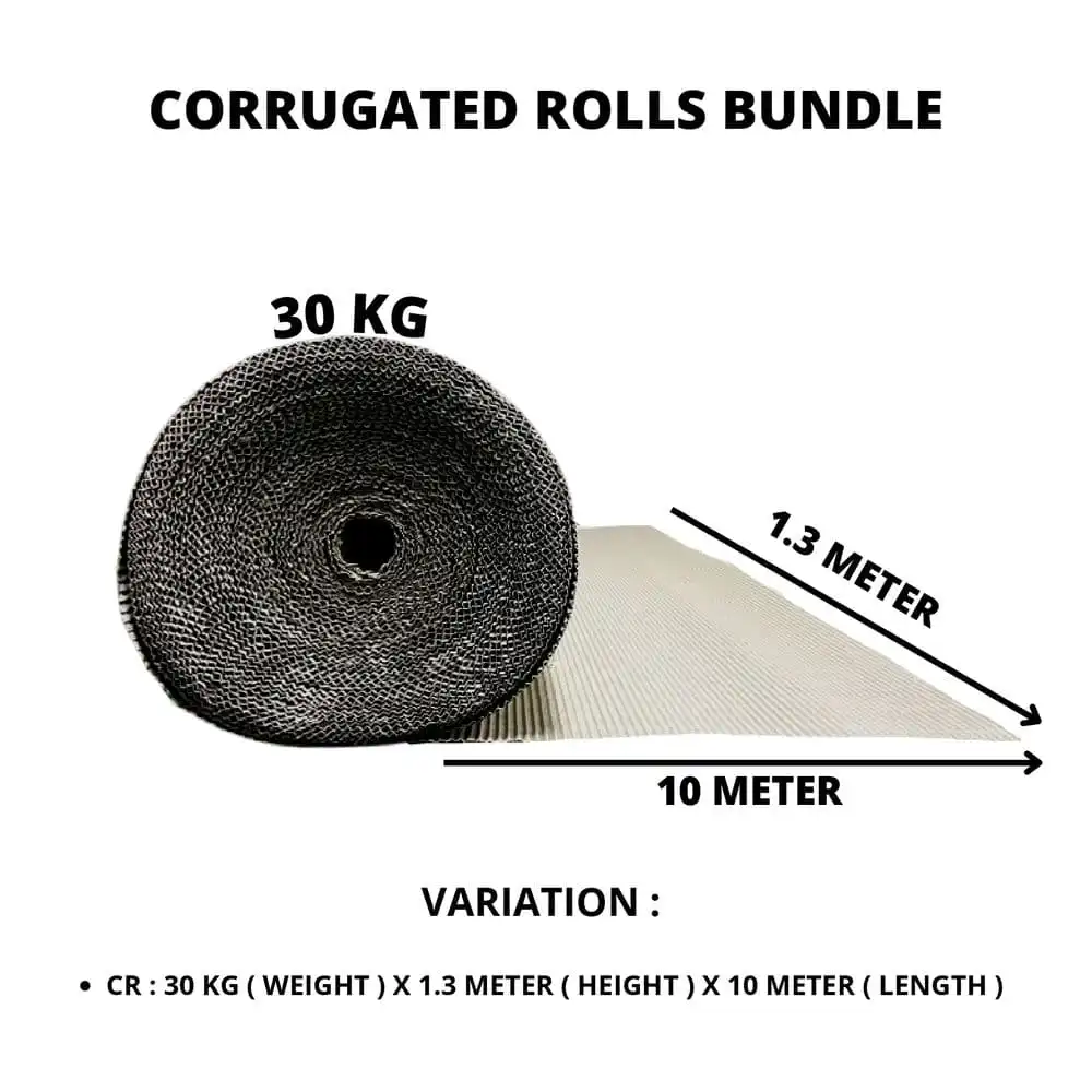 | Corrugated Length | 1.3m (Height) x 1m (Length), ROLL – 30KG, 1.3m (Height) x 10m (Length) |